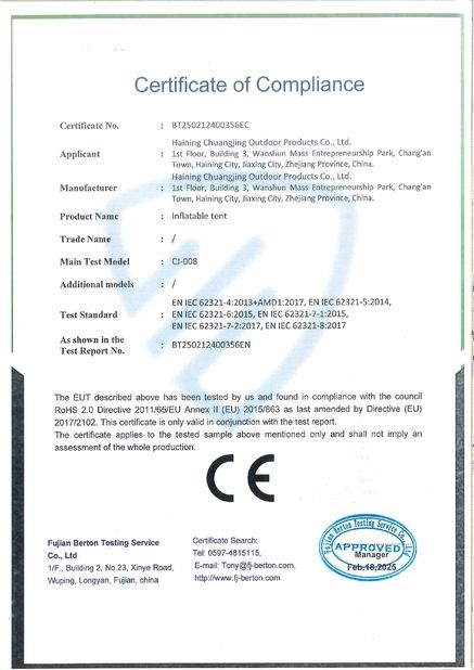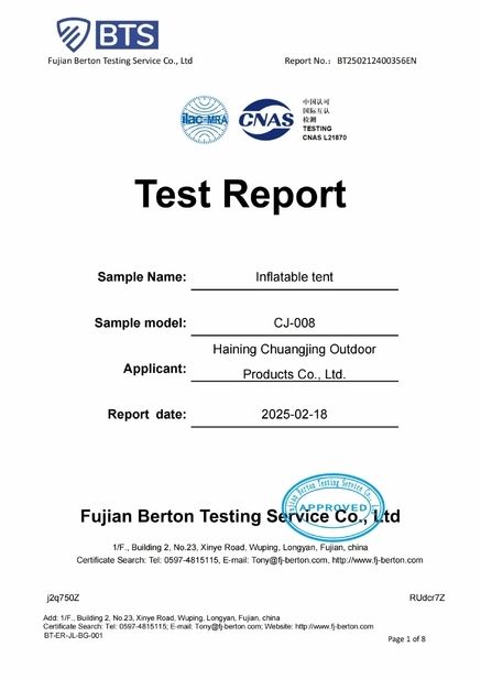 Haining city Chuangjing outdoor products Co., LTD Quality Control