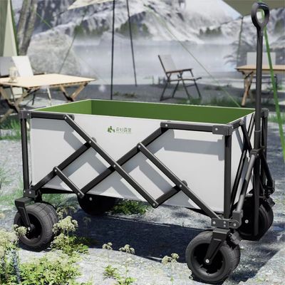 Steel frame hand-pulled foldable utility wagon designed for camping, gardening, and outdoor activities with a 150 lbs load capacity.